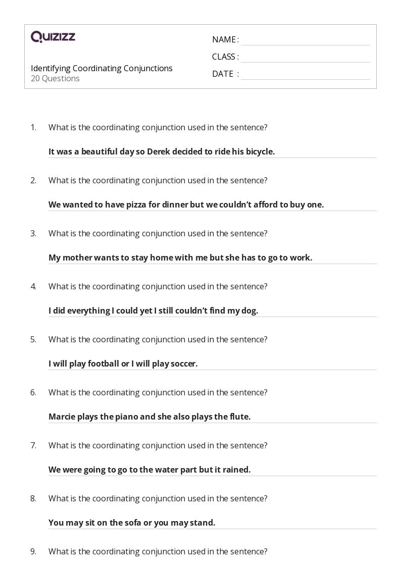 50 Coordinating Conjunctions Worksheets For 5th Year On Quizizz