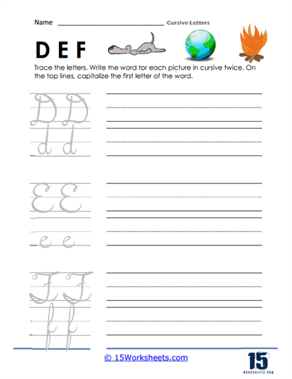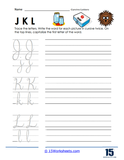 By using cursive letters worksheets, children can learn to write in a more fluid and efficient manner. Cursive writing has been shown to improve readability and speed of writing. It also helps children develop fine motor skills and hand strength, which are important for tasks such as drawing and playing musical instruments.