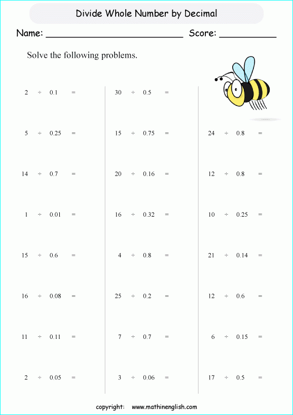 Here is an example of a decimal divided by a whole number worksheet: