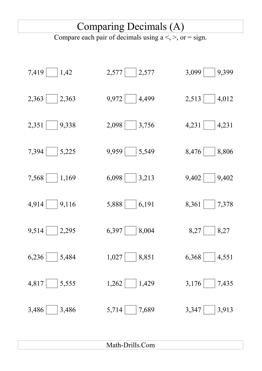 Another type of worksheet focuses on comparing and ordering decimals. Students practice using the symbols <, >, and = to compare decimal numbers. They also learn how to order decimal numbers from least to greatest or greatest to least. These activities help students develop a strong sense of number sense with decimals.