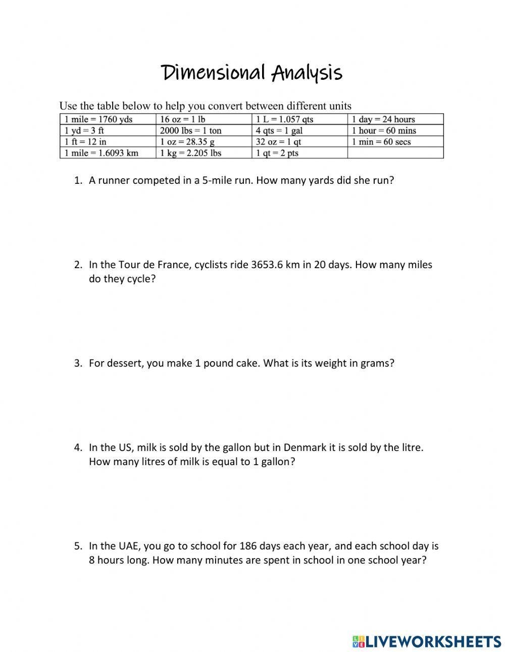 Additionally, dimensional analysis practice worksheets can help students to identify areas where they may be struggling and need additional support. By working through a series of problems, students can pinpoint any misunderstandings or misconceptions they have about dimensional analysis and seek help from their teacher or classmates to clarify any confusion. This targeted practice can be valuable in helping students to improve their skills and master the concepts of dimensional analysis.