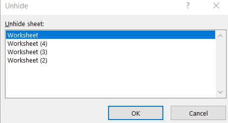 3. Select the worksheet you want to unhide from the list and click “OK.” The hidden sheet will now be visible in your workbook.
