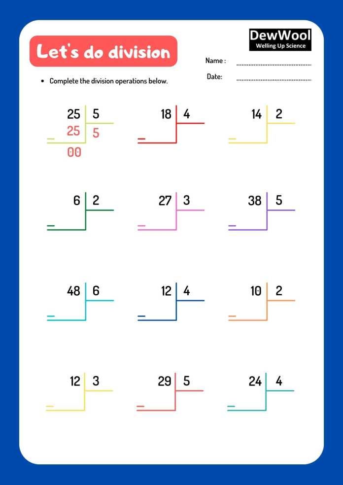 Division worksheets in PDF format often come with answer keys, allowing students to check their work independently. This encourages students to take responsibility for their own learning and helps them develop problem-solving skills. Additionally, the variety of problems included in these worksheets helps students practice different division techniques and strategies.