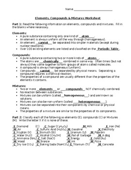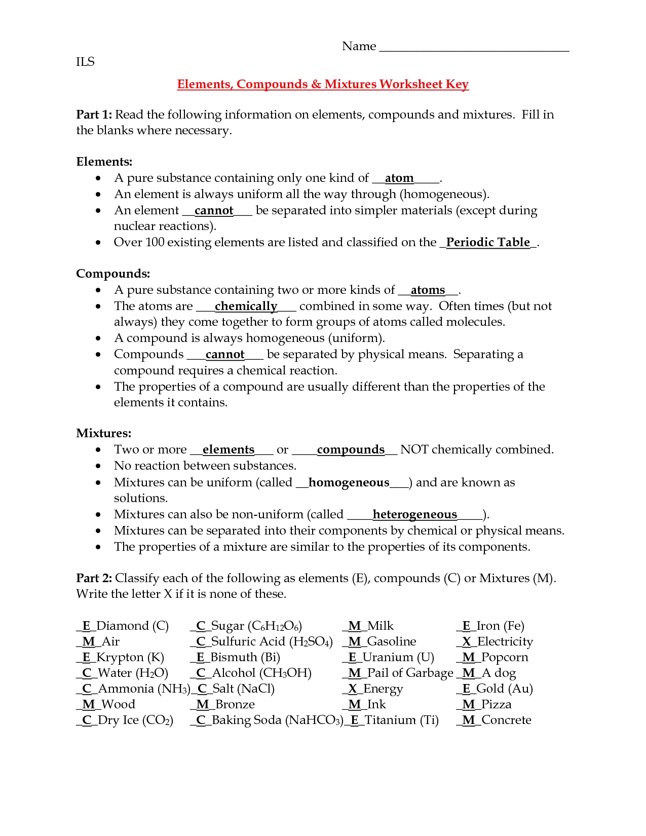One of the key components of the worksheet is the answer key, which provides students with the correct solutions to the questions and exercises. By referring to the answer key, students can check their work, identify any mistakes, and learn from them. This feedback is crucial in helping students improve their understanding of elements, compounds, and mixtures.