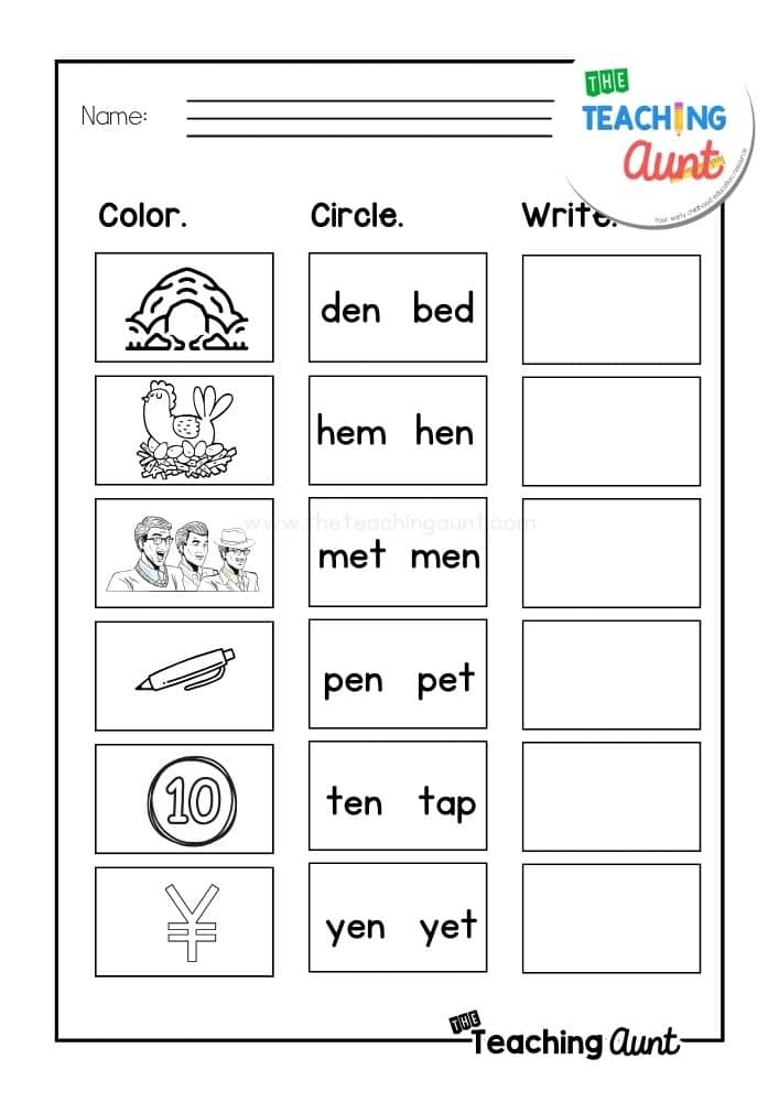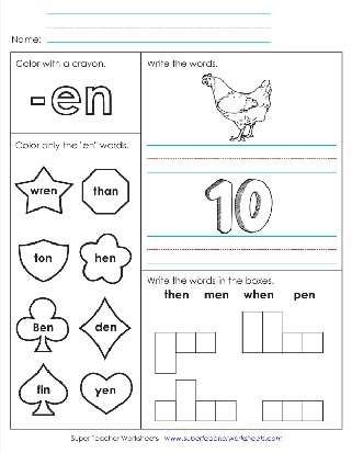Another activity often included in EN word family worksheets is filling in missing letters. Children are given a word from the “en” family with some letters missing. They must fill in the missing letters to complete the word correctly. This exercise helps children practice their spelling skills and reinforces the connection between sounds and letters in words.