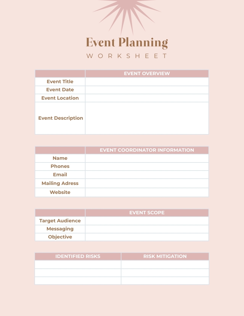 Event Planning Worksheet