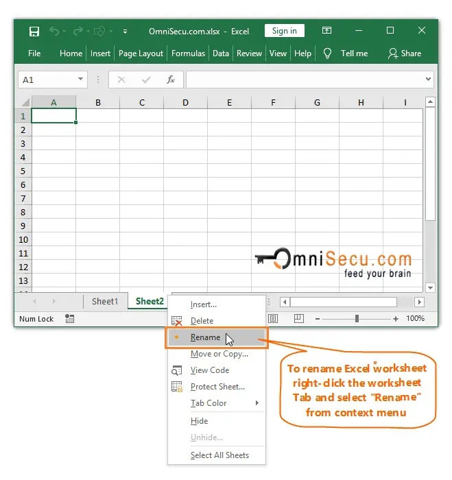If you prefer using the keyboard, you can also rename a worksheet by selecting the worksheet tab and then pressing the “Alt” key followed by the letter “H” and then “O.” This will bring up the “Rename” option, and you can enter the new name for the worksheet using the keyboard.