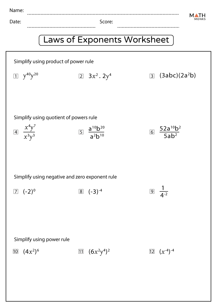 Exponents are a fundamental concept in mathematics that represent repeated multiplication. They are used to express numbers raised to a certain power, making calculations easier and more efficient. By practicing with exponents worksheets, students can build a solid foundation in this important mathematical concept.