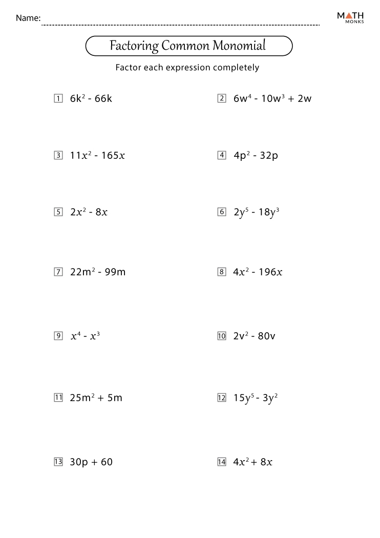 Factoring common factors worksheets are a great way for students to practice this skill and improve their algebraic abilities. These worksheets typically contain a variety of expressions with common factors that students need to identify and factor out. By completing these worksheets, students can strengthen their understanding of factoring and gain confidence in solving algebraic problems.
