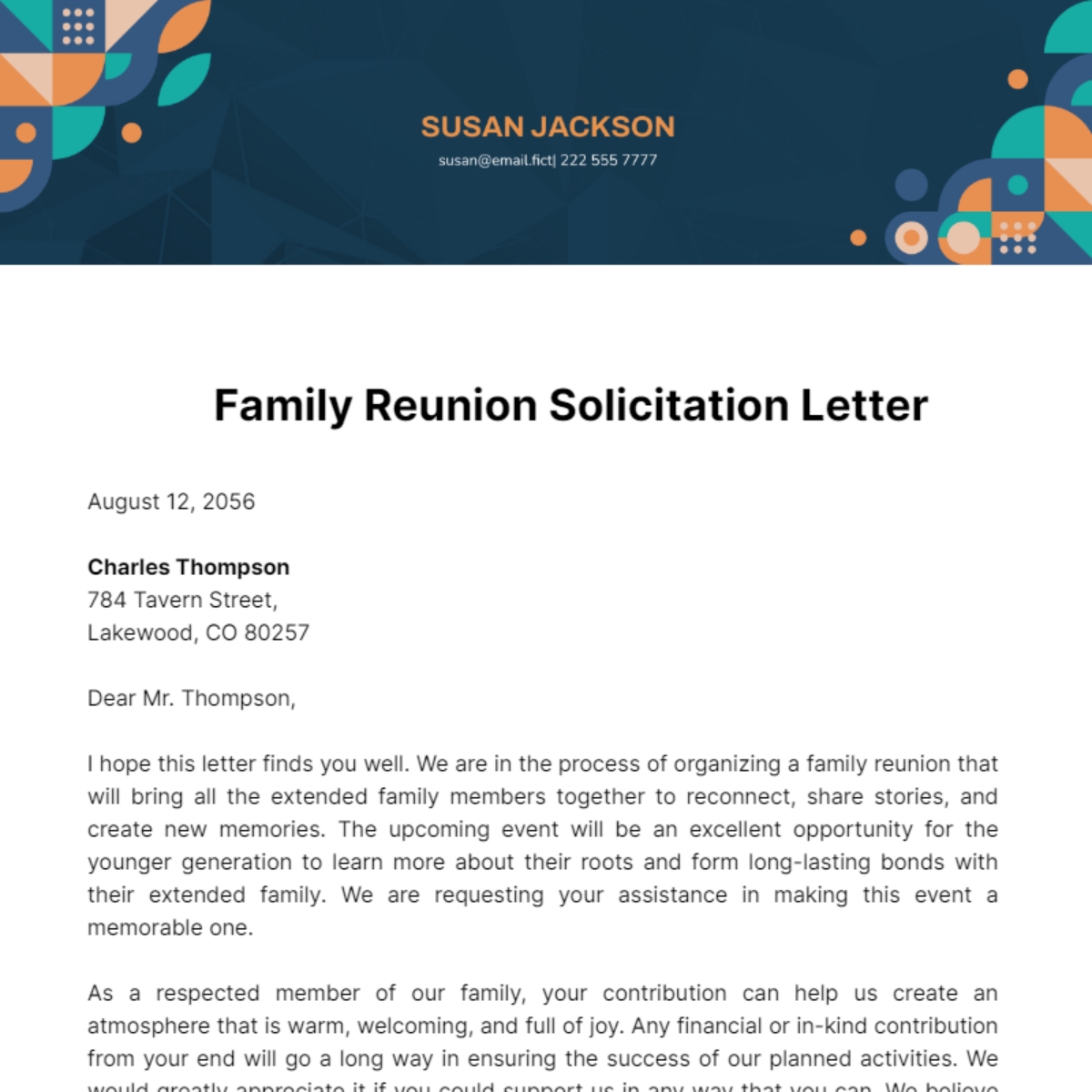Feel free to customize the invitation with details specific to your family reunion, such as activities planned, special guests, or a theme for the event. You can also add photos or graphics to make the invitation more personal and engaging for your family members.