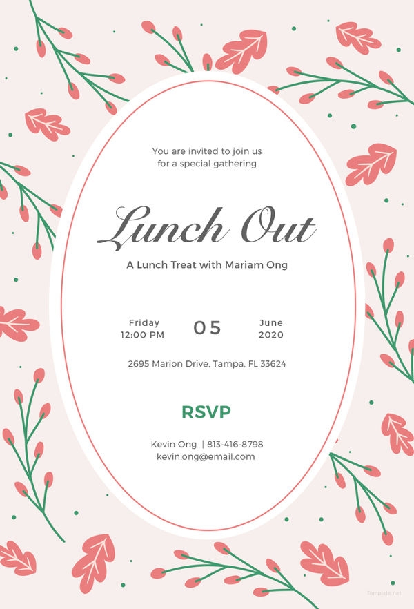 We would like to invite you to a farewell lunch in honor of [Colleague’s Name]. Please join us for a delicious meal and a chance to say goodbye. Date: [Date], Time: [Time], Location: [Venue]. RSVP by [RSVP Date].