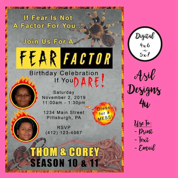 When it comes to designing your Fear Factor invitation, you’ll want to incorporate elements that evoke a sense of danger, excitement, and adventure. Think bold colors, dramatic fonts, and images that hint at the challenges to come. You can also include playful language that teases the activities your guests can expect at the party.