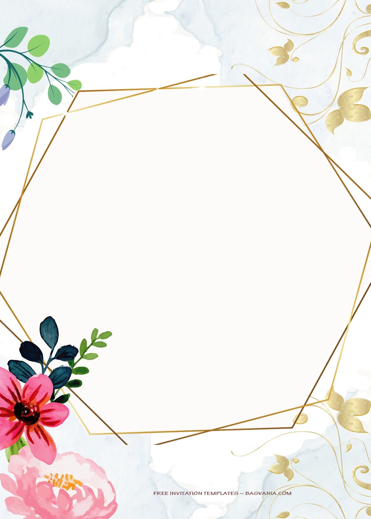 7 Aquatic Floral Gold Wedding Invitation Templates Gold Wedding