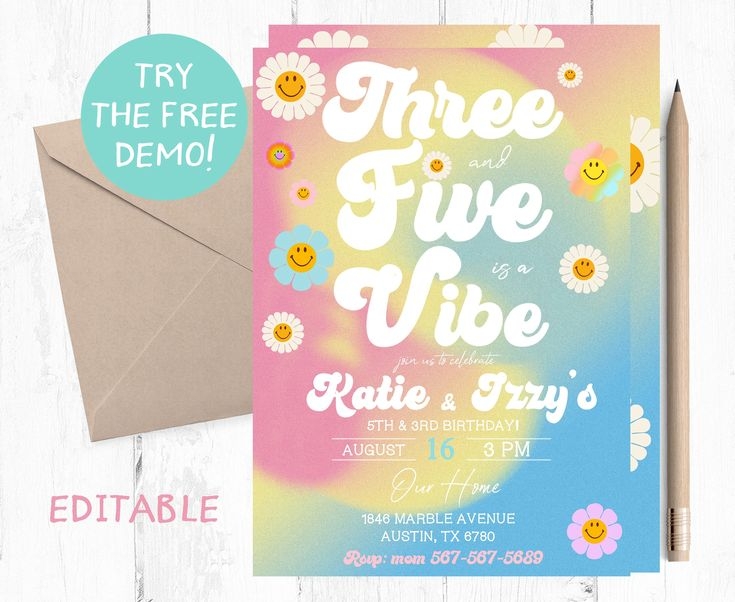 Don’t miss out on the opportunity to elevate your event with our “Five is a Vibe” invitation template. Download it now and get ready to impress your guests with a stylish and personalized invitation that sets the perfect tone for your upcoming celebration.