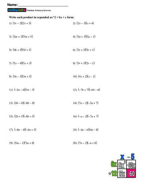 Another type of foil method worksheet may include word problems that require students to set up and solve equations using the foil method. These problems help students see the real-world applications of algebra and how the foil method can be used to solve practical problems. By working through these types of problems, students can develop critical thinking skills and apply their algebra knowledge in new contexts.