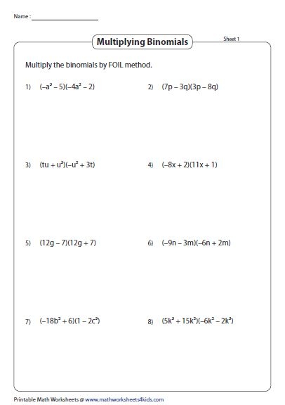 When students are first introduced to the foil method, it can seem overwhelming. However, with practice and the use of worksheets, students can master this technique and gain confidence in their algebra skills. Foil method worksheets provide students with the opportunity to practice multiplying binomials and reinforce their understanding of the concept.