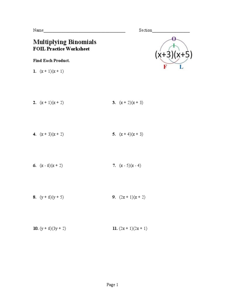 The foil worksheet typically consists of a series of problems that require students to multiply two binomials using the foil method. Each problem will have two sets of parentheses, and students must follow the steps of the foil method to find the product. By working through these problems, students can reinforce their understanding of the foil method and improve their ability to apply it in different situations.