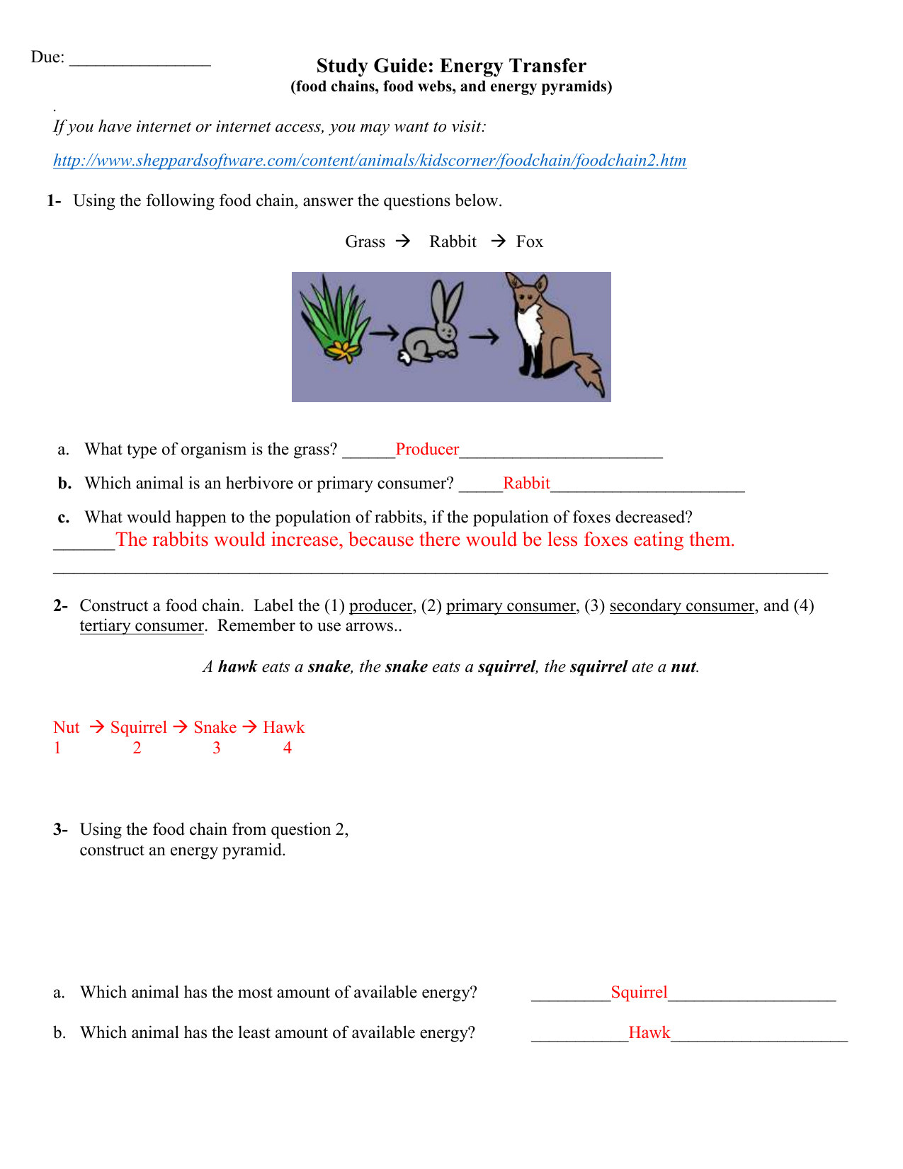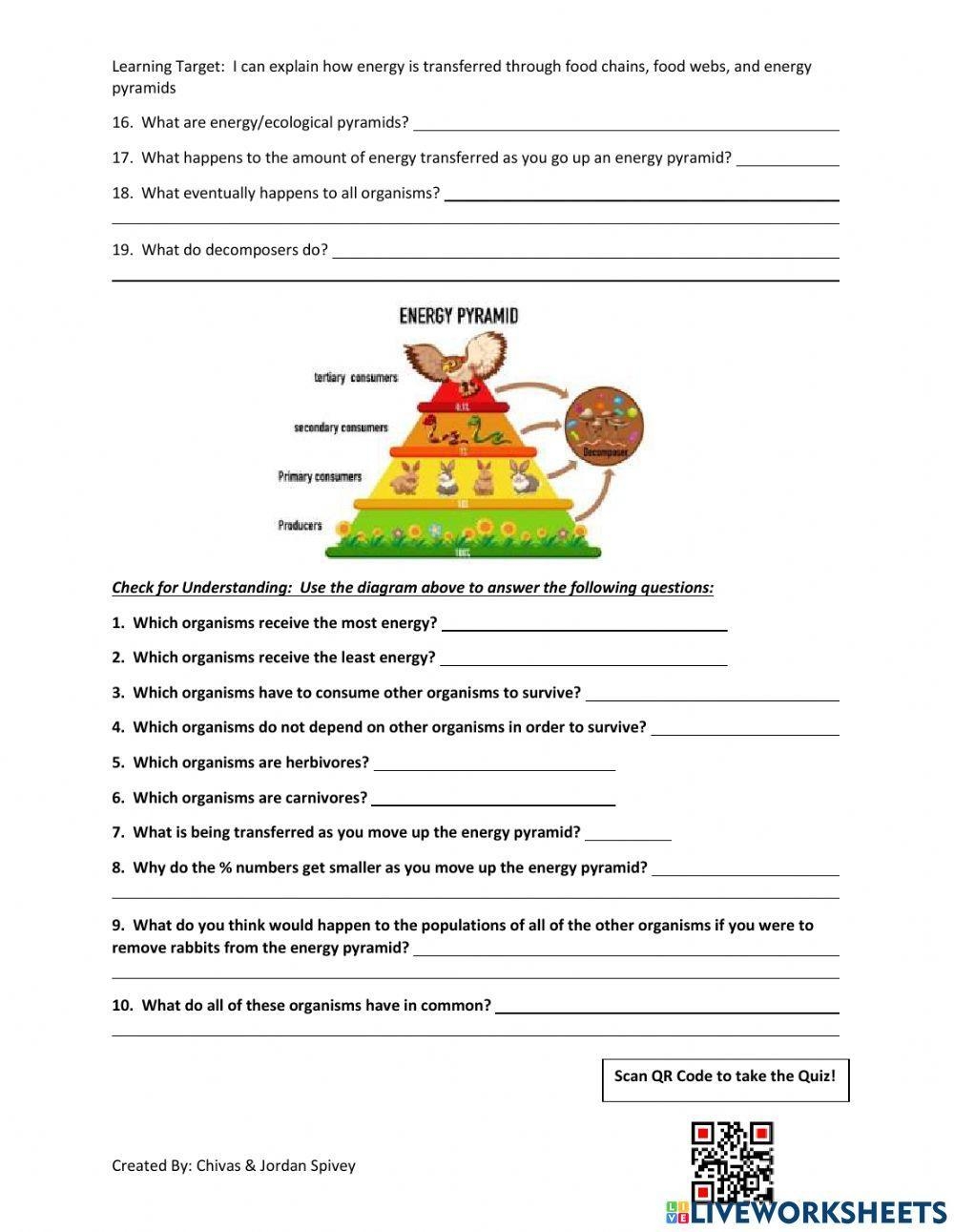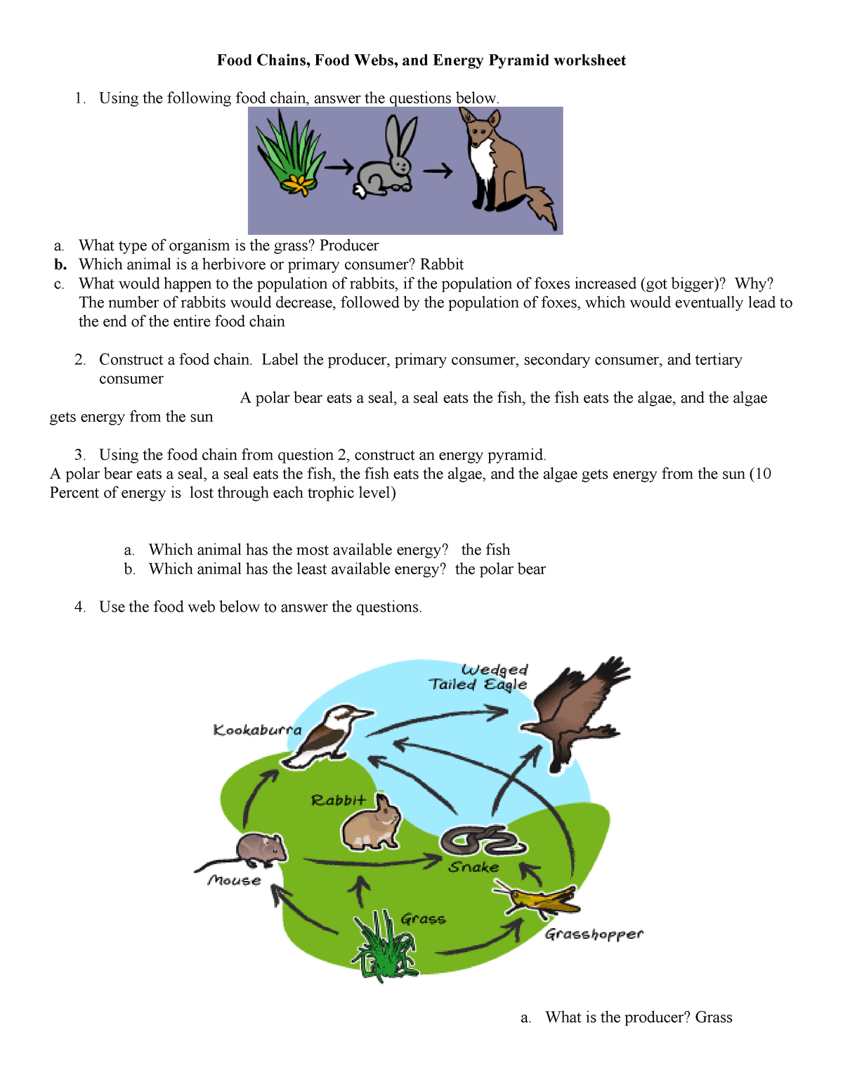 Food Chains, Food Webs, and Energy Pyramid Worksheet