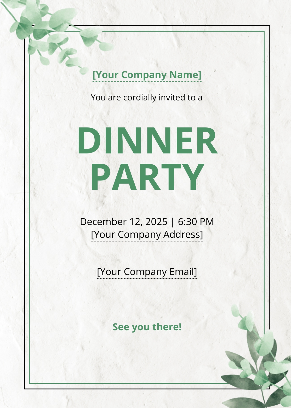 With our formal dinner party invitation template, you can easily create a sophisticated and classy invite that will impress your guests. From the wording to the design, every detail can be customized to suit your event and personal style.