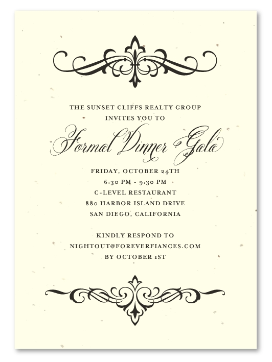 The evening will begin with cocktails at [Time], followed by a gourmet dinner prepared by our talented chef. The dress code for the evening is formal, so please dress accordingly.