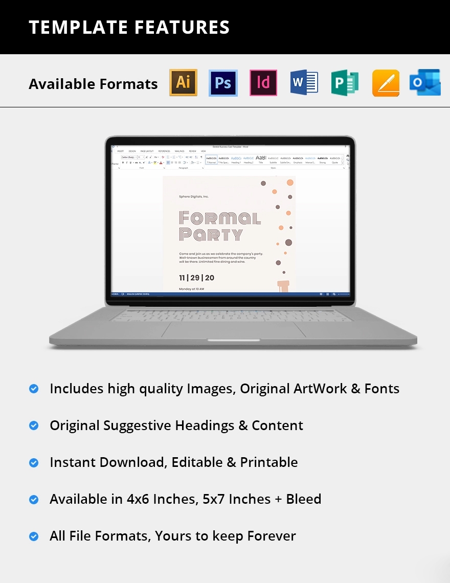With our template, you can create professional-looking invitations in minutes, saving you time and effort. Whether you prefer a traditional paper invitation or a digital e-vite, our template can be easily adapted to suit your needs. Impress your guests with a stylish and polished invitation that sets the perfect tone for your formal event.