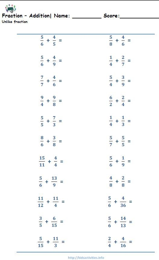 Fraction Worksheets 5th Grade