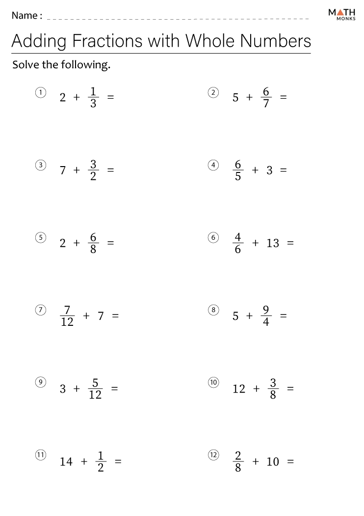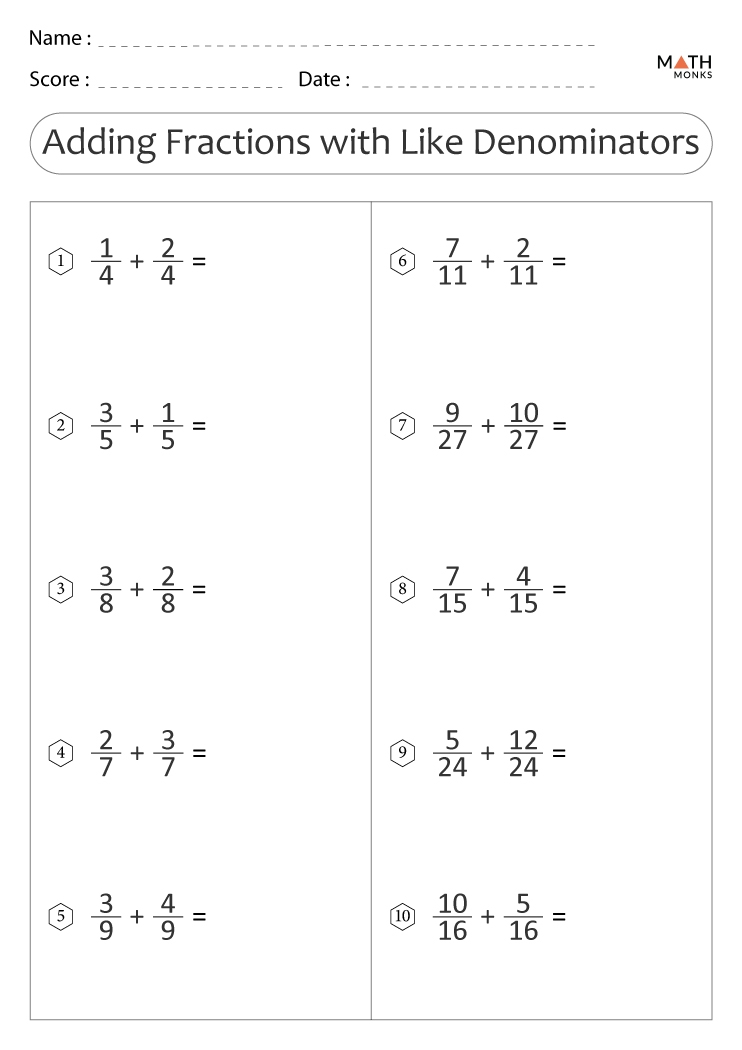 Adding fractions worksheets typically include a variety of problems that require students to add two or more fractions together. These worksheets can range from simple problems with like denominators to more challenging problems with unlike denominators. By practicing with these worksheets, students can become more confident and proficient in adding fractions.