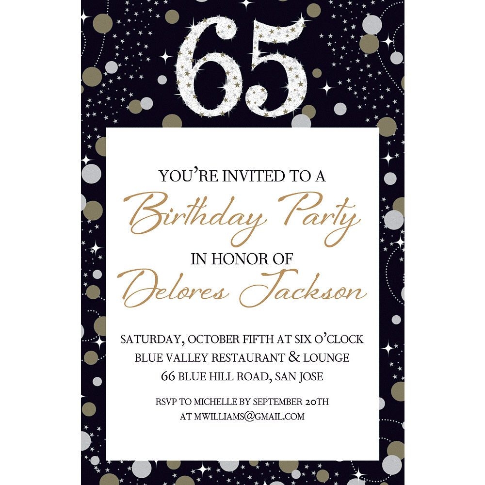 Many websites offer free 65th birthday party invitation templates that can be downloaded and printed at home. Some sites even allow you to customize the templates online before downloading, giving you the flexibility to create a one-of-a-kind invitation that reflects the theme of your party. Whether you prefer a classic design or something more modern, there are endless possibilities to choose from.