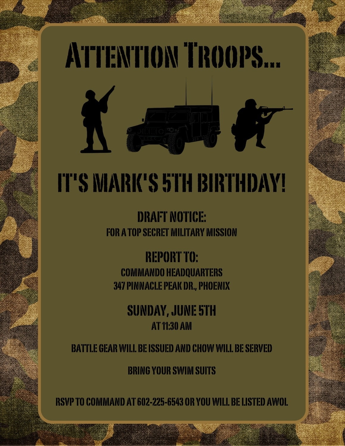 So why wait? Download one of our free army birthday party invitation templates today and start planning the ultimate army-themed celebration. With just a few clicks, you can create personalized invitations that will wow your guests and set the tone for a memorable party. Don’t miss out on this opportunity to make your event truly special with our free army birthday party invitation templates.