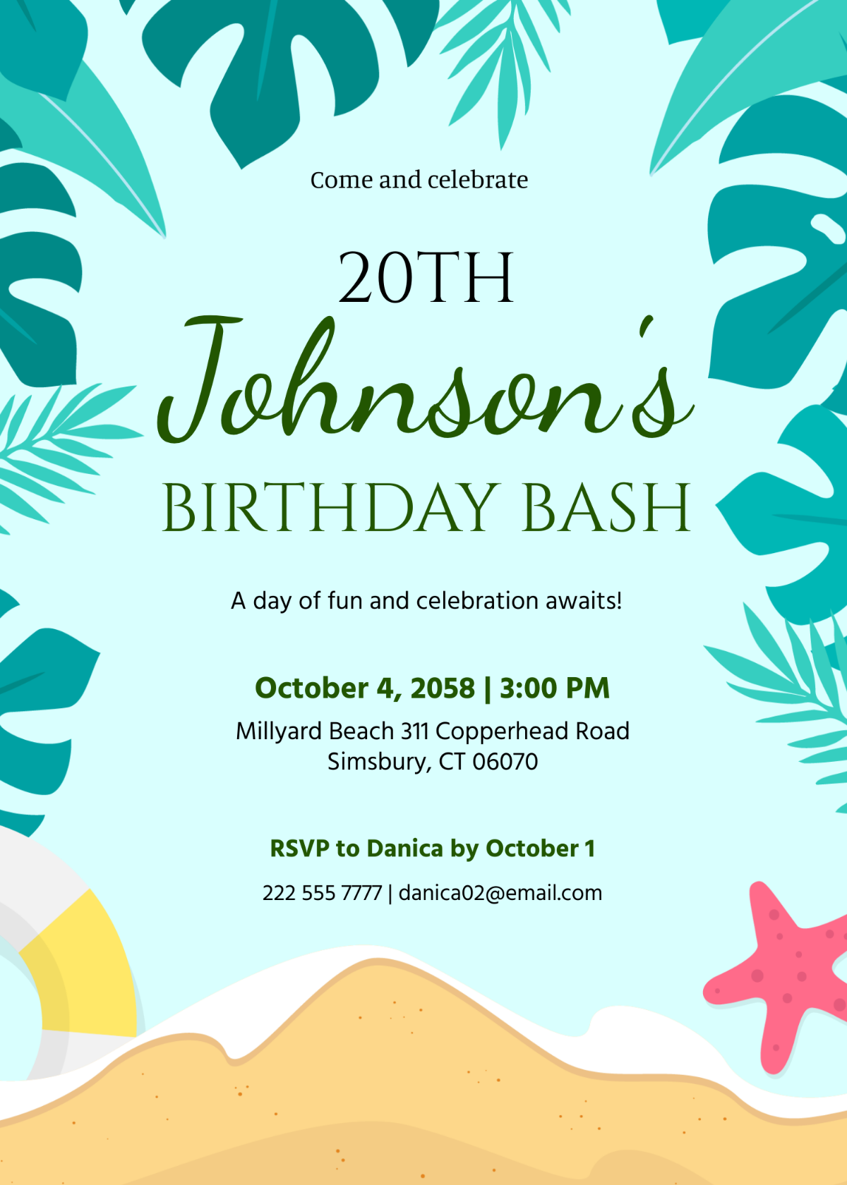 So why wait? Start planning your beach birthday party today and make it a day to remember with our free invitation template. Your guests will be thrilled to receive such a stylish and personalized invite, and you’ll be one step closer to throwing the ultimate beach bash.