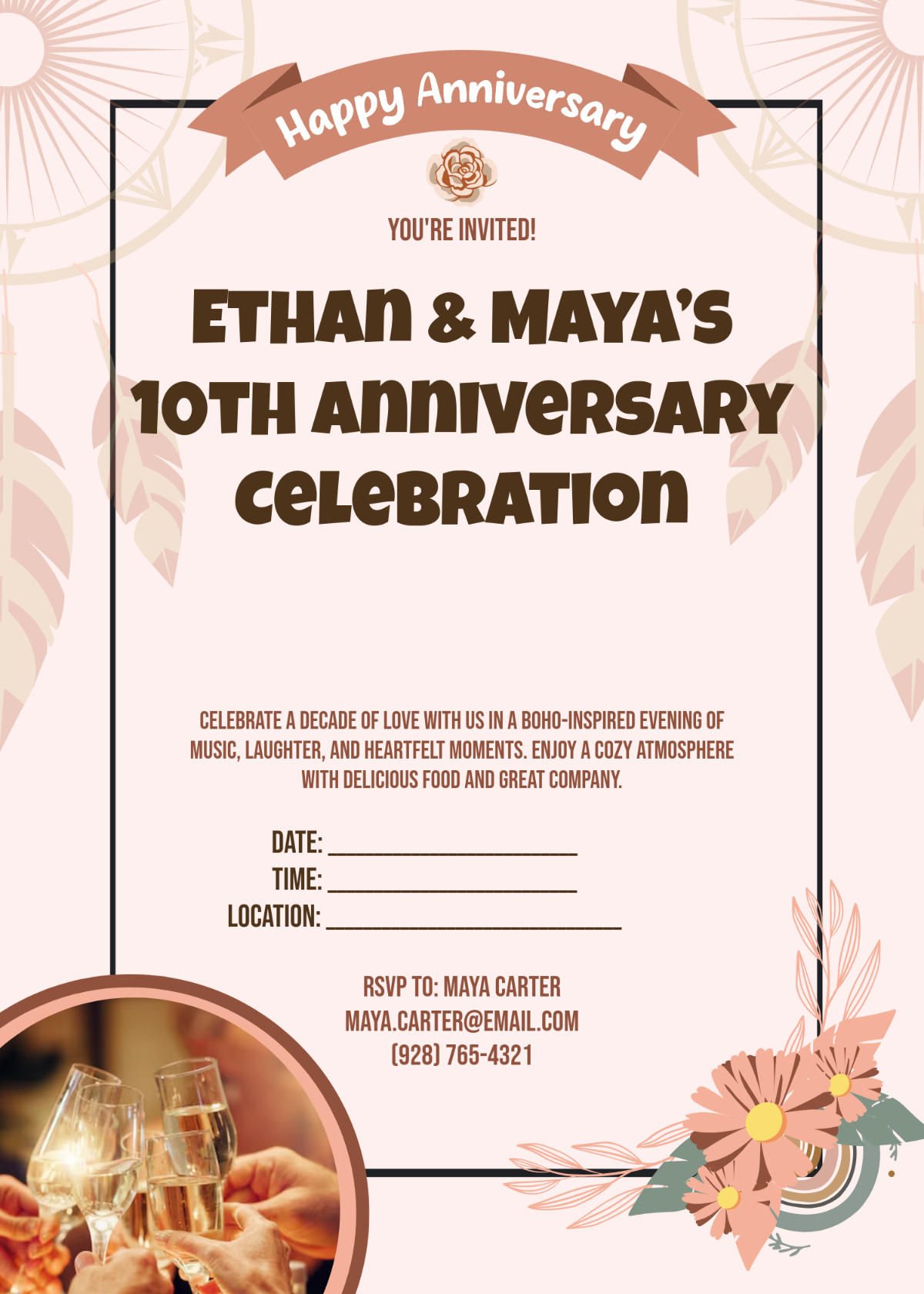 From watercolor flowers to dreamcatcher motifs, our boho invitation templates offer a range of styles to suit your taste. You can easily add your own text, change the colors, and even upload your own images to create a unique and personalized invitation that reflects your individuality. Best of all, these templates are completely free to download and use for your event.