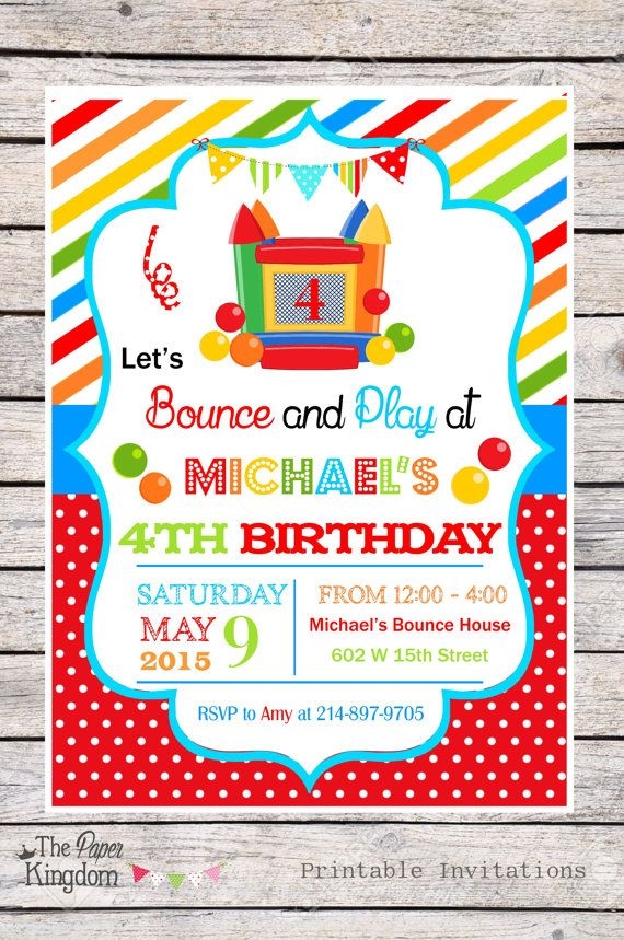 5. Bounce House Bash: This template is all about fun and excitement, with colorful graphics and playful fonts that will get everyone in the party mood. Add your party details, print them out, and get ready for a bouncy good time!