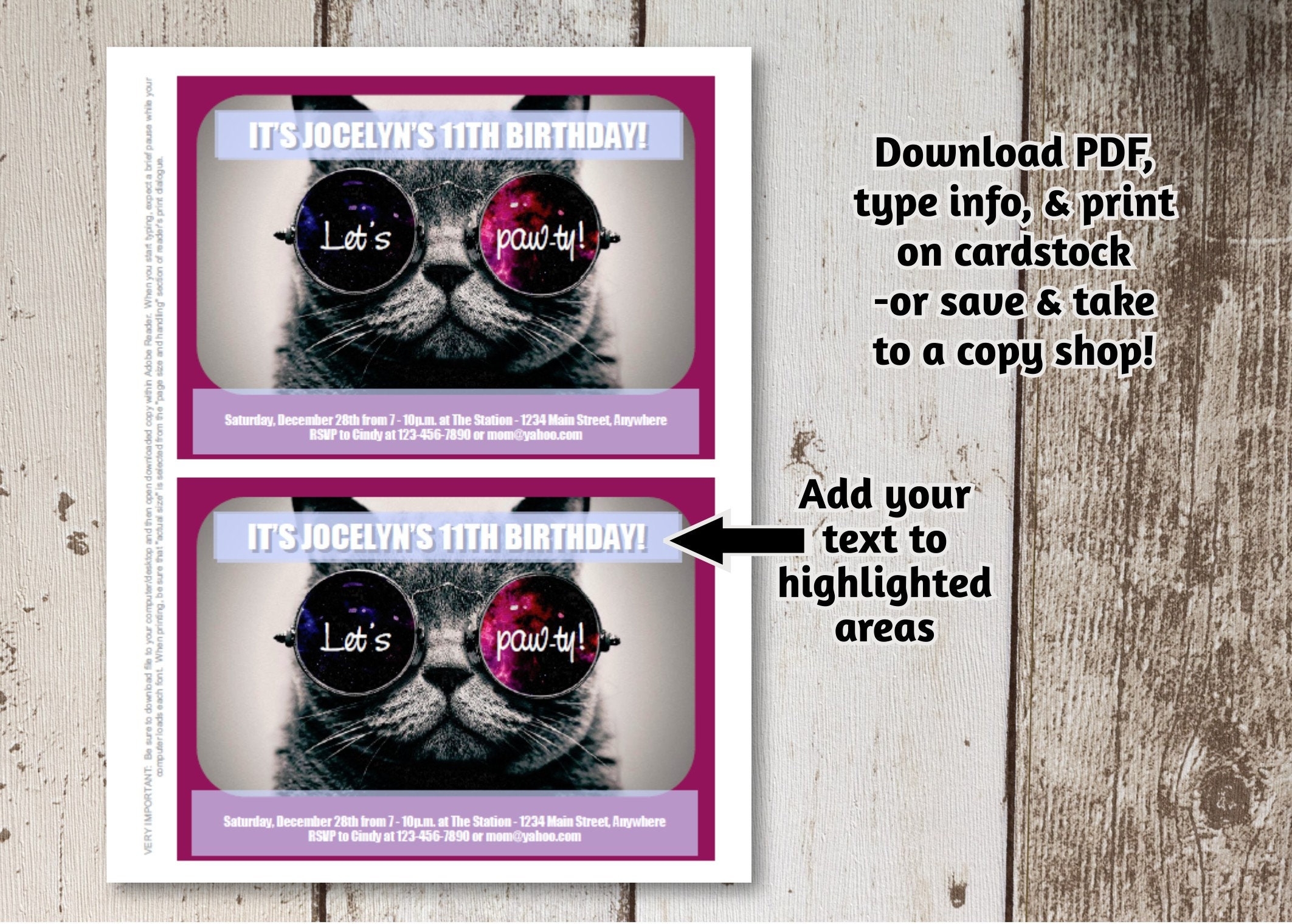 Cat Invitation Template Printable Cool Cat Birthday Party Invite