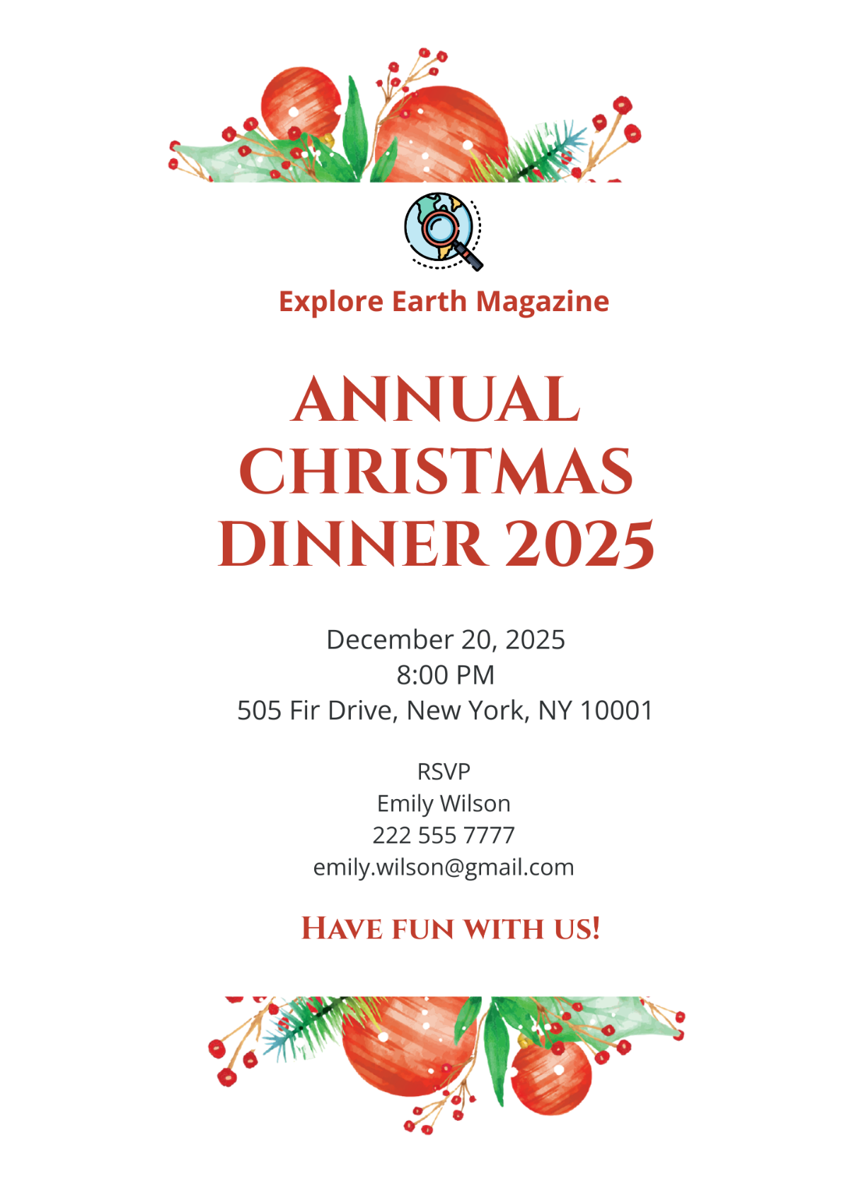 Once you’ve customized your invitation, you can easily download and print it at home or send it electronically to your guests. You can also choose to have the invitations professionally printed for a more polished look. With a beautifully designed invitation, you’ll set the stage for a memorable Christmas dinner that your guests won’t soon forget.