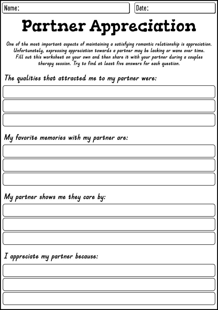 Free couples therapy worksheets are a valuable resource for couples who want to work on their relationship in the comfort of their own home. These worksheets provide structured exercises and prompts that can help couples improve their communication skills, resolve conflicts, and deepen their connection.