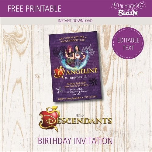 Overall, with these free Descendants invitations templates, you can easily create the perfect invites for your Descendants-themed party. Whether you’re a fan of Mal and Evie, the Villain Kids, or the Isle of the Lost, there’s a template for every style and theme. So download your favorite template, customize it with your event details, and get ready to host a party that your guests will never forget!