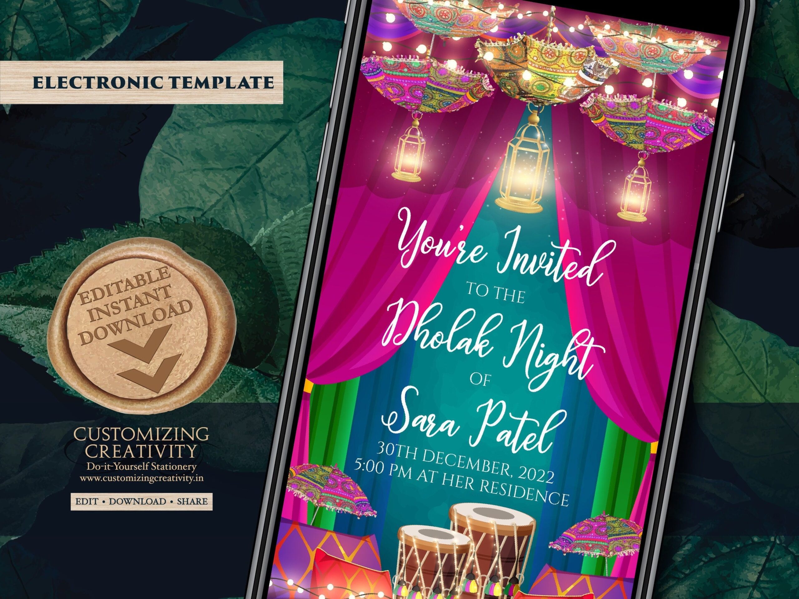 Our dholki invite template features vibrant colors, intricate patterns, and elegant fonts that capture the essence of this joyous occasion. You can personalize the template by adding your own text, images, and even changing the colors to match your event decor. Whether you’re hosting a small gathering or a lavish celebration, our template is versatile enough to suit any style.