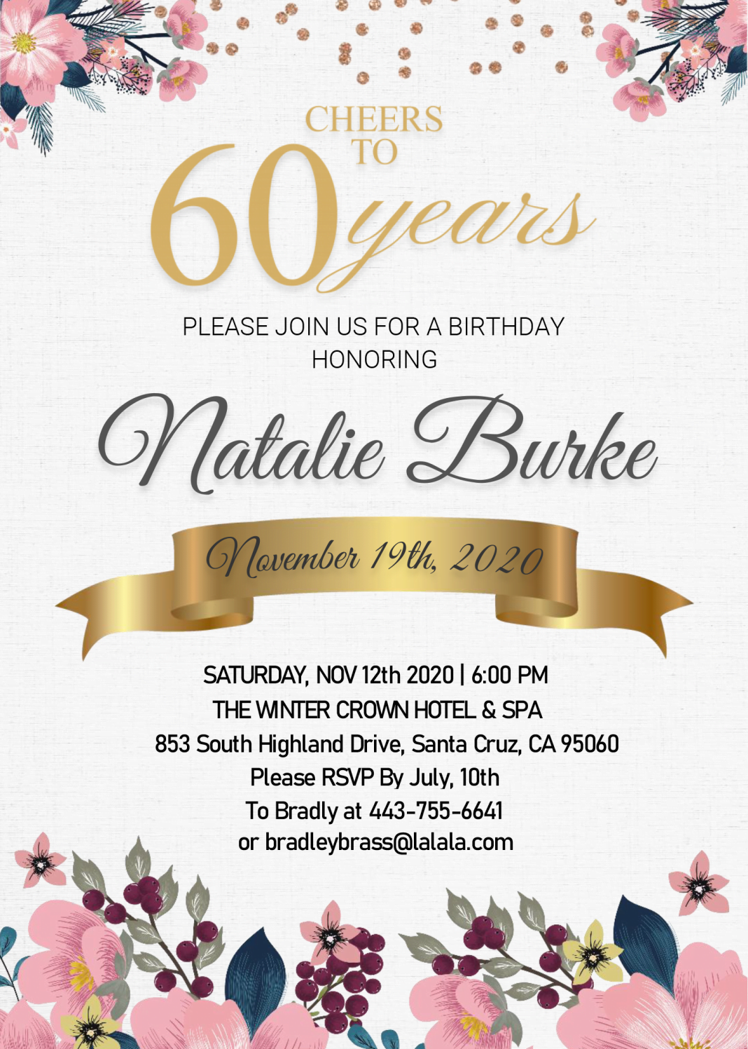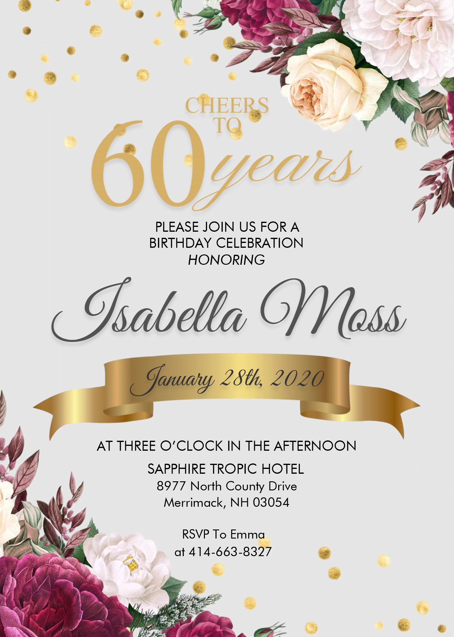 So why wait? Start browsing through these templates today and get ready to impress your guests with personalized invitations that will make your 60th birthday party truly special!