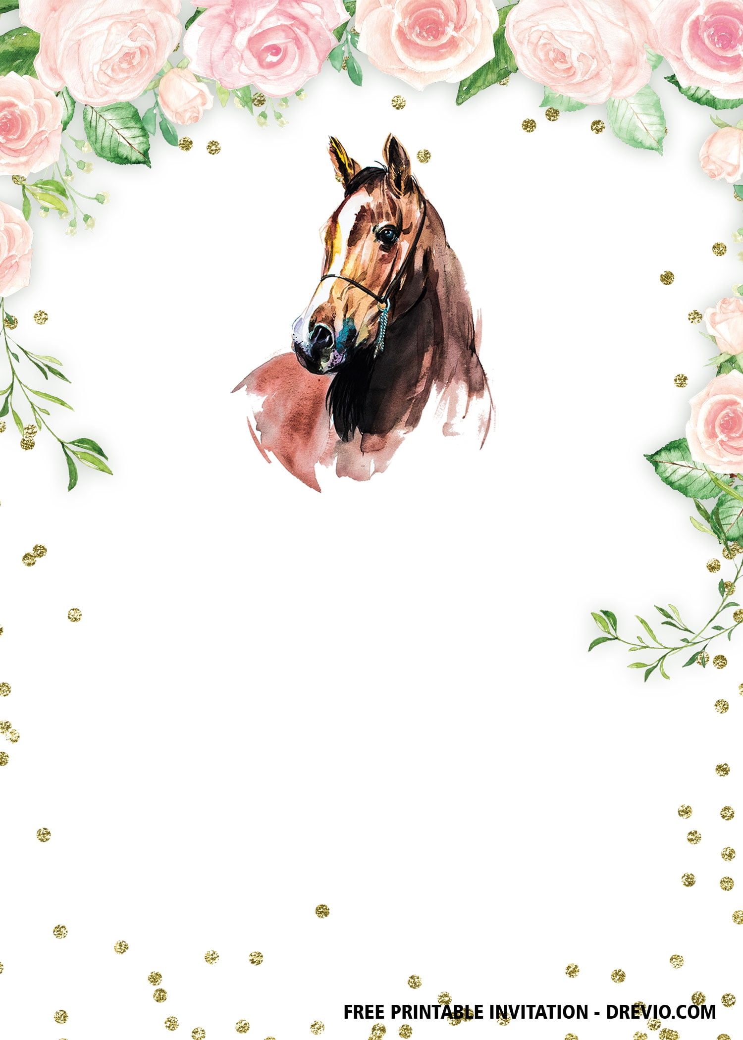 4. Equestrian Elegance Template: If you’re going for a more sophisticated and stylish look, this template is for you. It features an elegant equestrian design with a touch of glamour. Customize the text with your party details and impress your guests with this chic invitation.