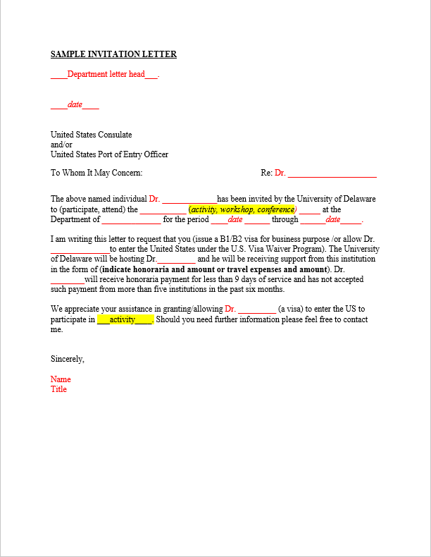 Free Invitation Letter Templates