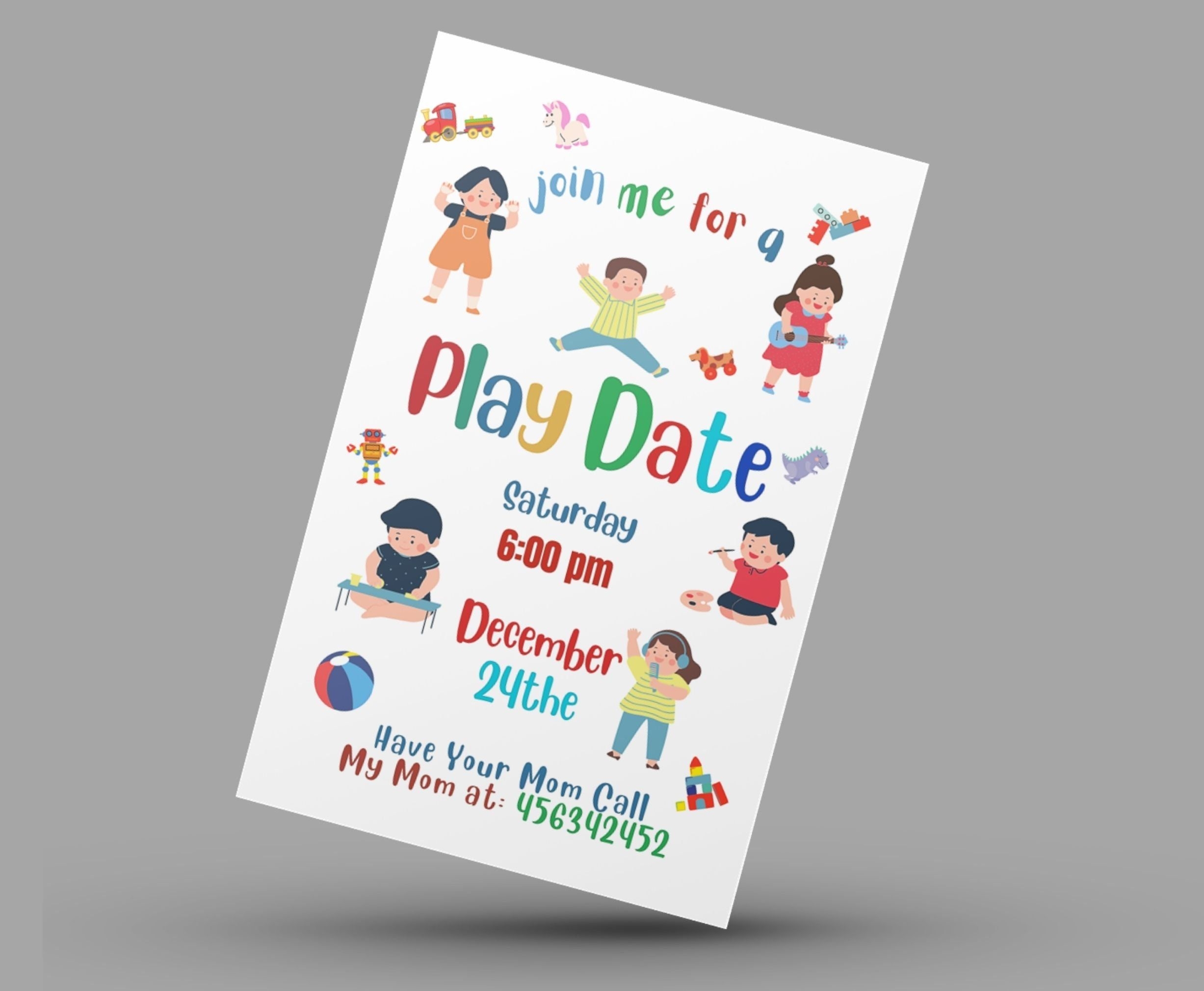 Playdate Invitation Template Editable Printable Playdate Card Play