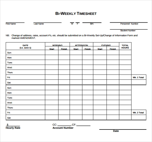 Free Printable Biweekly Timesheet Template