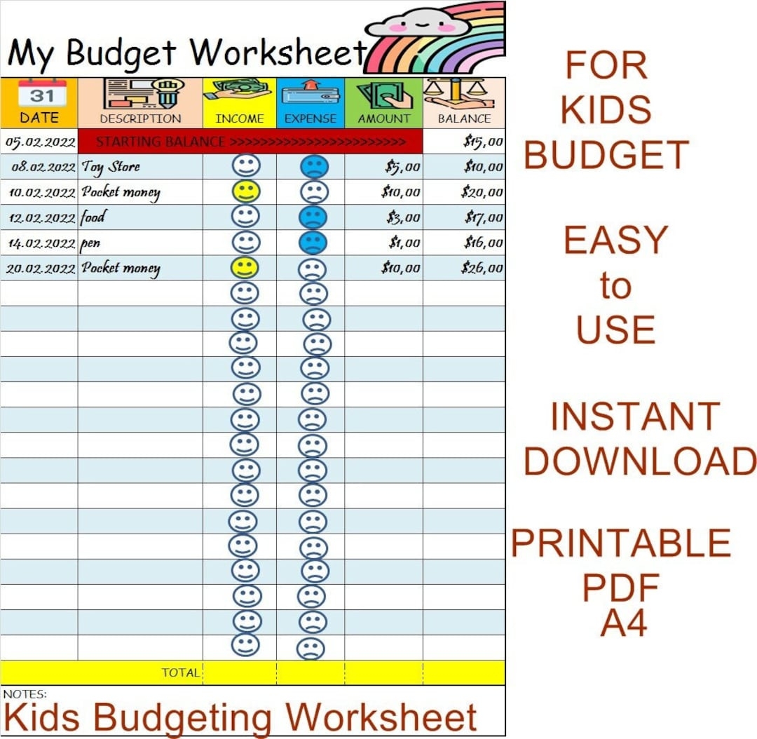 One popular budget worksheet for kids is the “Money Management for Kids” worksheet, which includes sections for kids to track their allowance, chores, and any other sources of income. It also has spaces for kids to list their expenses, such as toys, snacks, and other items they may want to purchase.