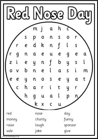5. Word Search: Print out a Red Nose Day-themed word search puzzle for toddlers to solve. Include words related to charity, kindness, and giving back to encourage toddlers to learn new vocabulary. This activity can also help improve their literacy and cognitive abilities.