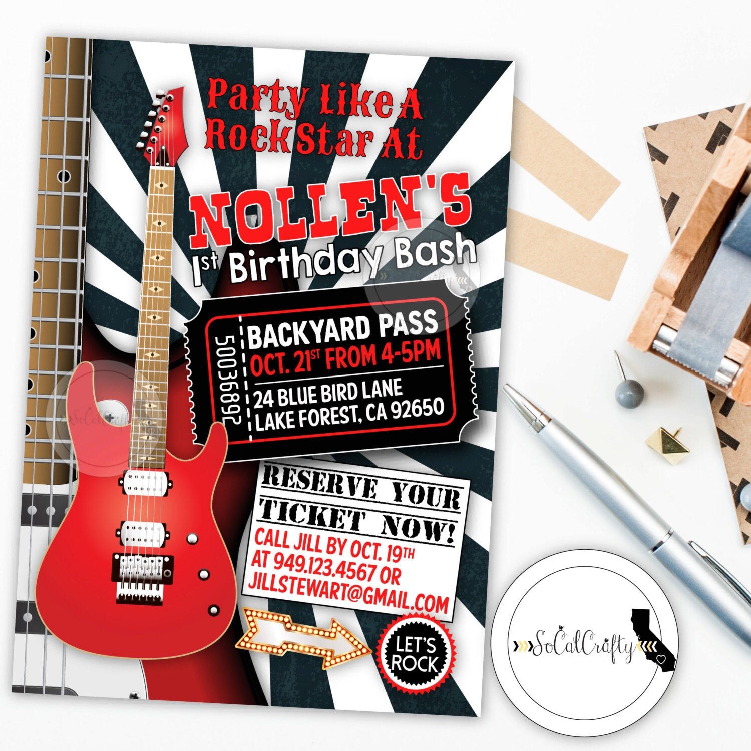 1. Electric Guitar Design: This template features a vibrant electric guitar design that is perfect for any rock and roll party. Simply download the template, customize the details, and print as many copies as you need for your guests.