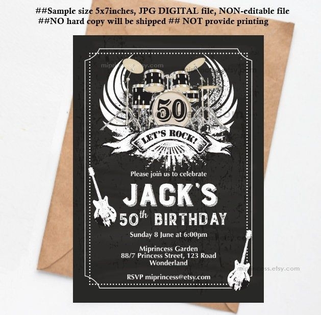 5. Classic Rock and Roll: Finally, if you prefer a classic rock and roll theme, go for a simple yet stylish invitation template featuring classic rock elements like guitars, drums, and music notes. This design is timeless and will appeal to all fans of the genre.