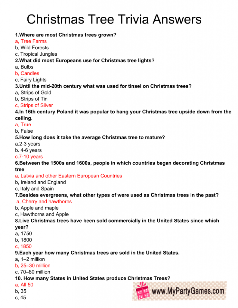 Free Printable Christmas Tree Trivia Quiz