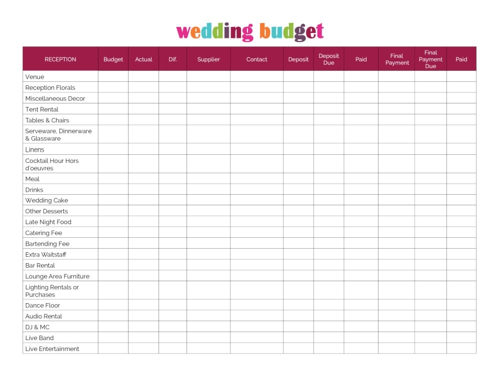 Free Printable Wedding Budget Worksheet