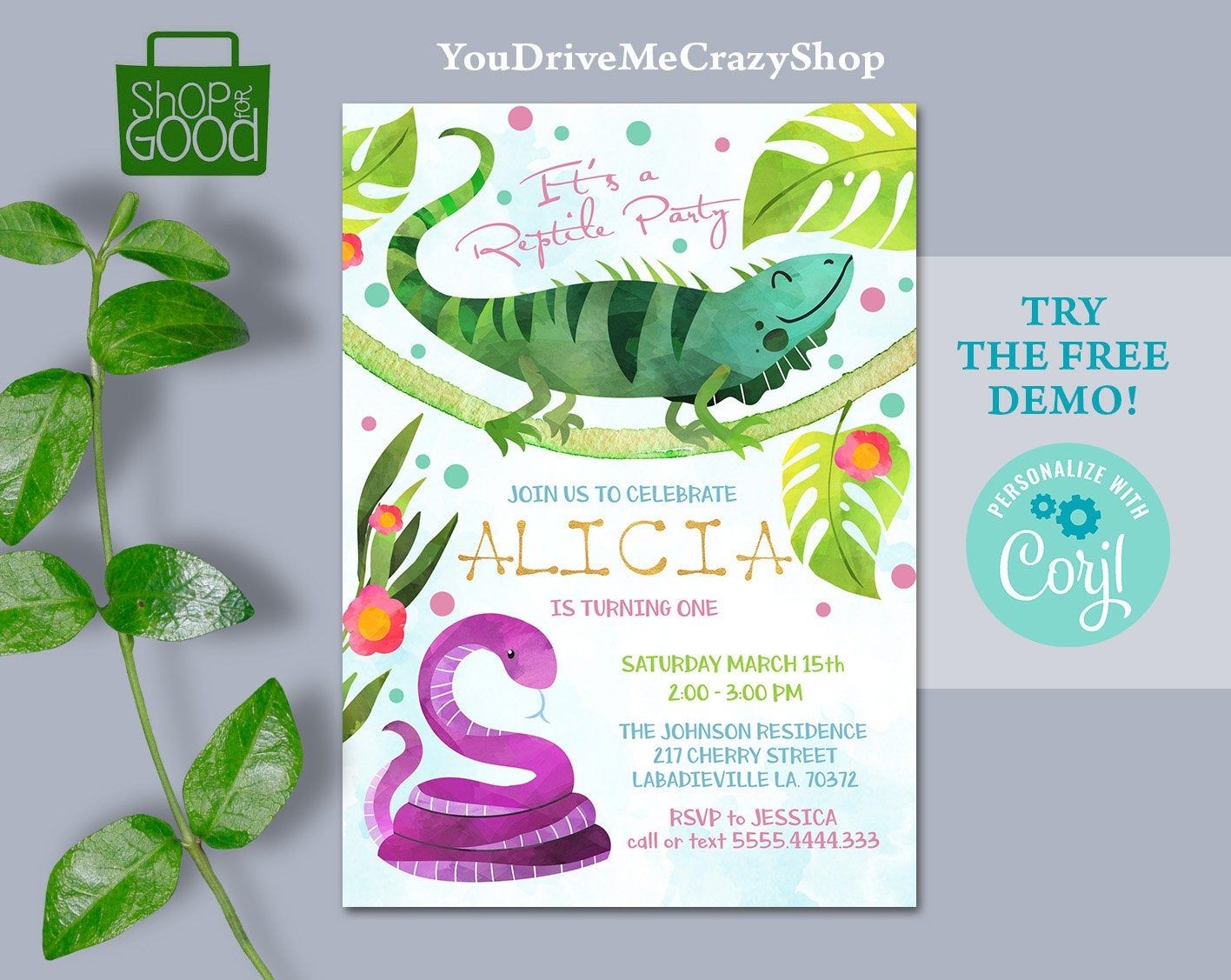 Editable Reptile Birthday Invitation Reptile Invitation Reptile