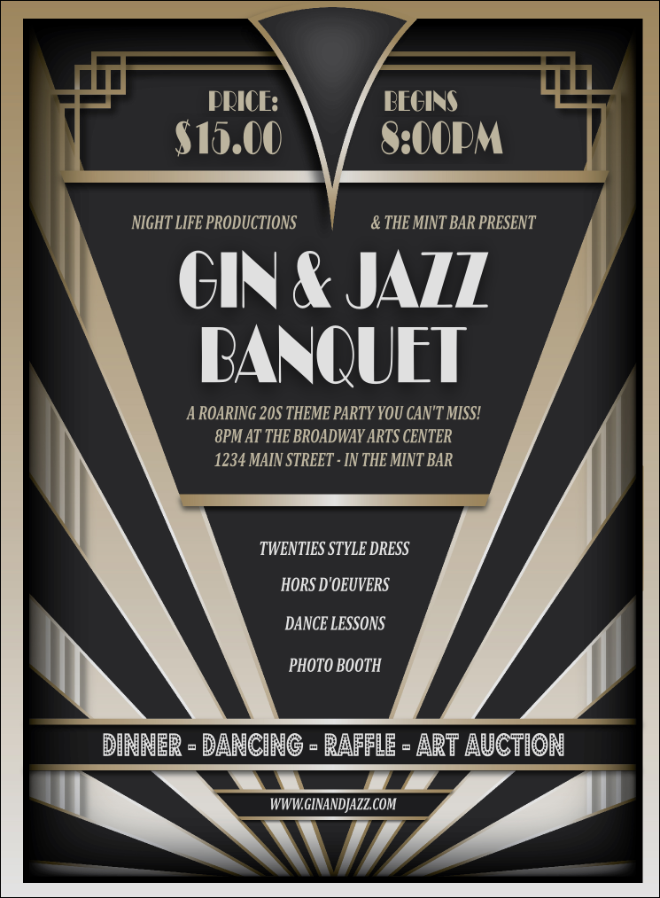 One popular choice for a Roaring 20s invitation template is an art deco design featuring geometric shapes and bold colors. This type of template evokes the opulence and sophistication of the era, making it perfect for a formal affair. You can customize the template with your party details and even add a photo or image to personalize it further.